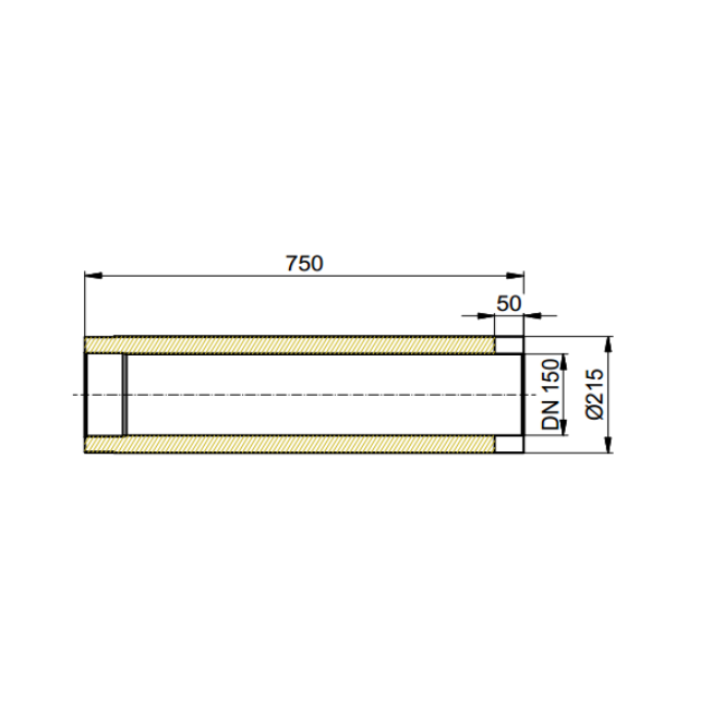 Doppelwandiges Rauchrohr Ø150 x 750 x 2 mm, Farbe schwarz
