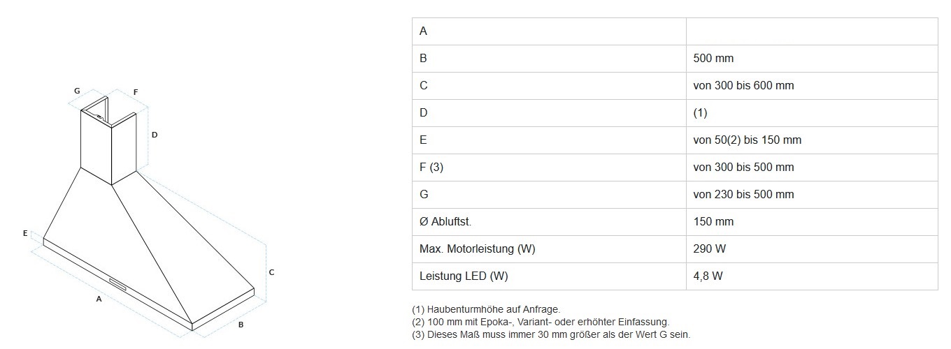 Bei der Diagonalhaube befindet sich der Haubenturm seitlich und ist somit ideal für Eckausführungen, Küchenmöbel, Nischen oder für den Anbau an einer Säule.