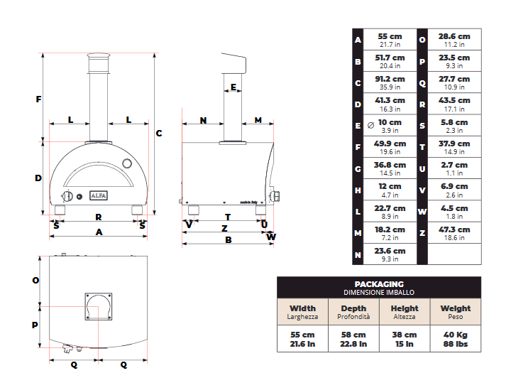 Gas Pizzaofen Alfa Forni Moderno - Portable Top - Antikrot