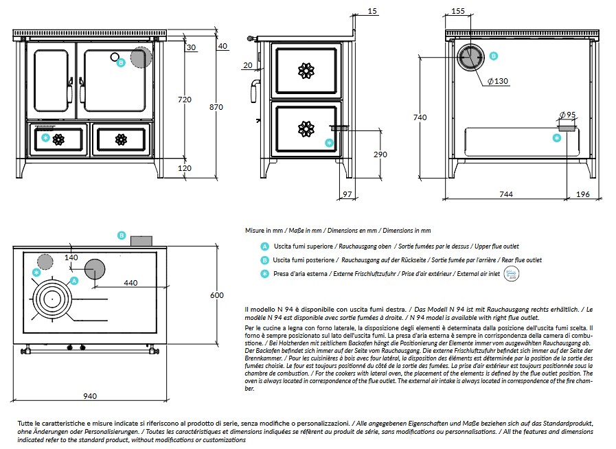 Der Herd ist zusätzlich in den Varianten N94 Stone Naturstein und N94 Steel schwarz erhältlich. Alle Ausführungen finden Sie selbstverständlich bei uns im Shop.