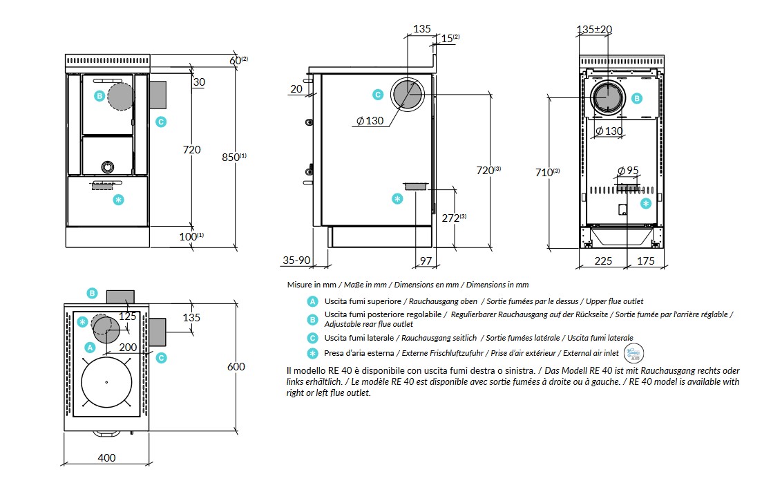 - Durchmesser Rauchausgang 130 mm