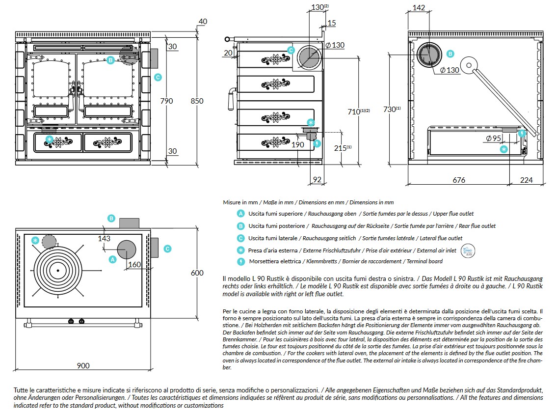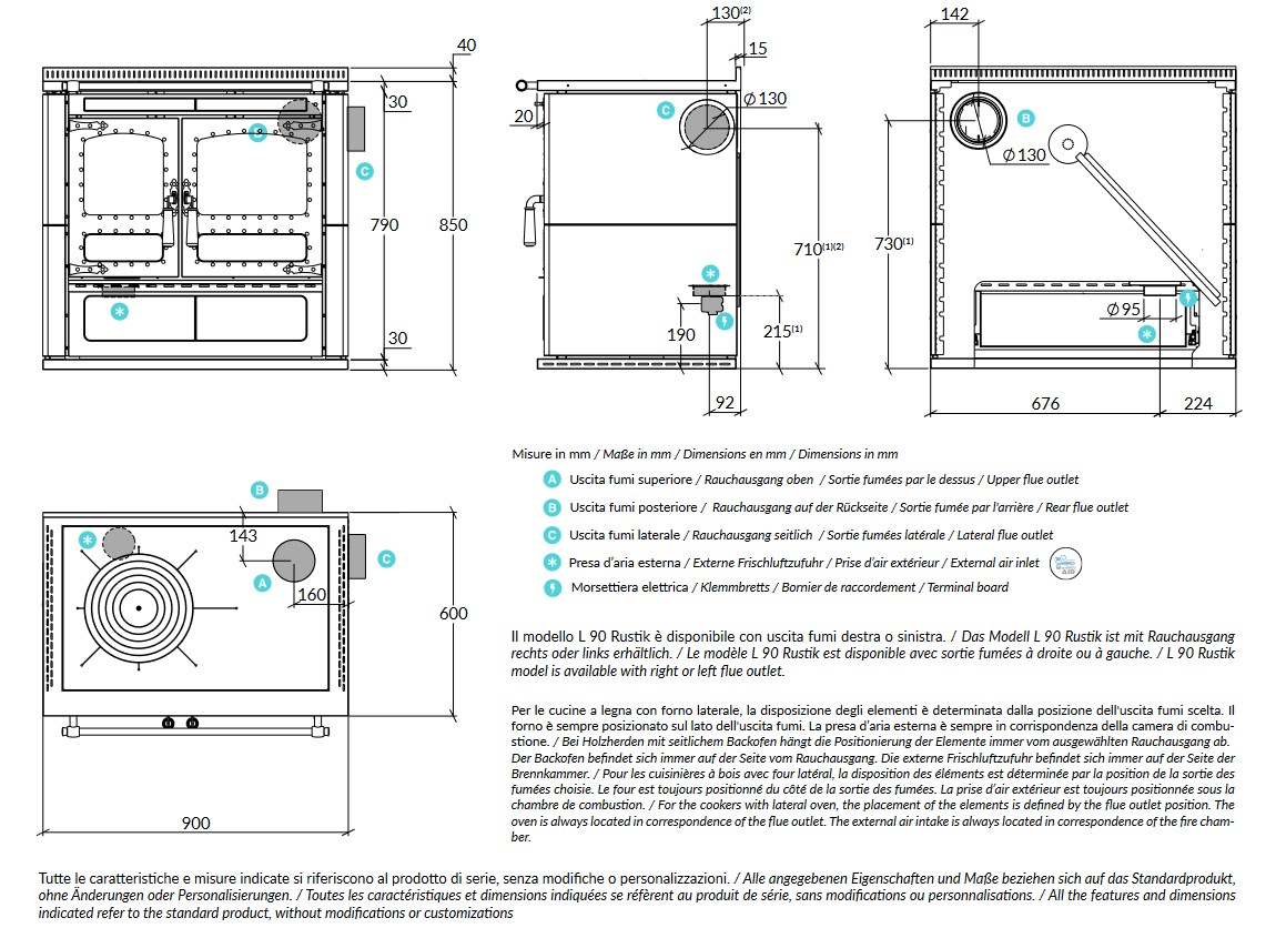 Holzherd Rizzoli - Serie L mit Backofen - L 90 - Rustik - 10 kW