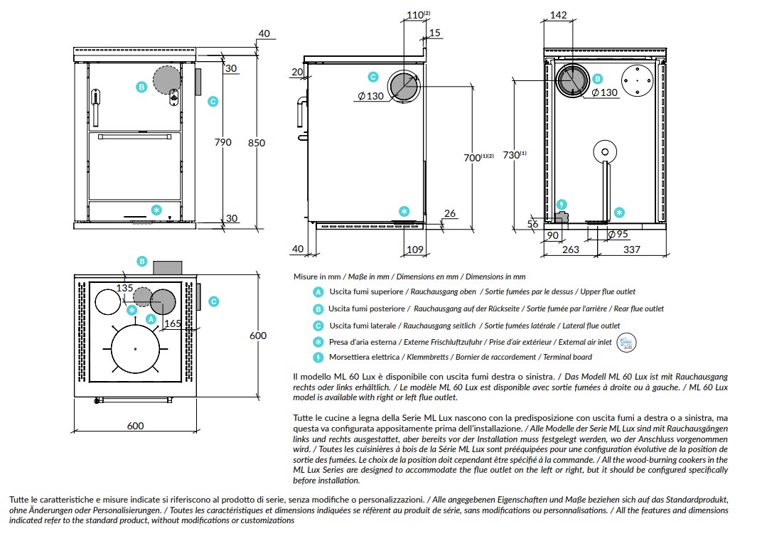 Die Serie M wurde durch die Serie ML Lux erweitert. Dieser Küchenherd ist sehr egelant und besitzt eine komplett verglaste Feuerraum- und Backofentür. Durch die Ergänzung der metallisierten Farben Silber, Perla und Bronze wird die Serie M einer der modernsten Holzherde auf dem Markt. Die drei Merkmale, die ausschlagebend sind: ausgezeichnete Sicht aufs Feuer, Maxi-Brennkammer, großer Backofen. Durch erstklassige Technologien hat der ML Lux die beste europäische Zertifizierung für niedrige Emissionen erhalten. Modelle dieser Serie können eingebaut oder freistehend installiert werden.