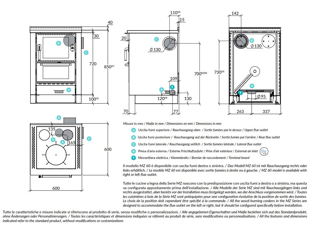 Die Modelle der Serie MZ beeindrucken mit einem modernen Design legen, welches Funktionalität und Qualität einschließt. Dieser Herd besitzt eine Maxi-Brennkammer und einen großen Panorama-Backofen. Alle MZ-Modelle besitzen einen regulierbaren Teleskopsockel, welchen man optimal für die Anpassung Ihrer Möbel nutzen kann. Durch die doppelt verglasten Feuerraumtür mit selbstreinigendem Sichtfenster wird eine angenehme Sicht aufs Feuer ermöglicht. Die Modelle sind serienmäßig mit dem zertifizierte Surround Heat® System ausgestattet. Dadurch ist der sichere Einbau zwischen Möbel möglich.
