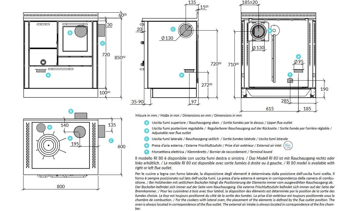 Holzherd Rizzoli - Serie RI mit Backofen - RI 80 - 8 kW - Variant