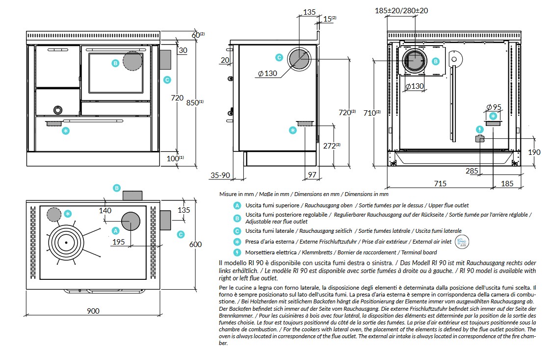 Die Herde sind mit dem Surround Heat® System für den Einbau zwischen Möbeln ausgestattet. Das zertifizierte Hitzeschutz-System verwendet isolierendes Material neuester Generation mit integrierten Kühlkörpern, die für eine optimale seitliche Isolation sorgen und eine gezielte Wärmeabgabe ermöglichen. Die Modelle RI sind außerdem mit Elektro-Ventilatoren ausgestattet, welche eine bessere Wärmeabgabe garantieren. Im Falle vom Stromausfall kann der Herd jedoch ohne Weiteres verwendet werden, vorausgesetzt die notwendigen Sicherheitsabstände werden eingehalten.