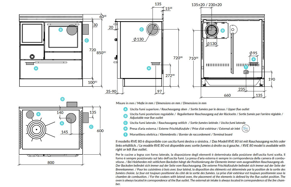 Holzherd Rizzoli - Serie RVE mit Backofen - RVE 80 - 8 kW - Epoka