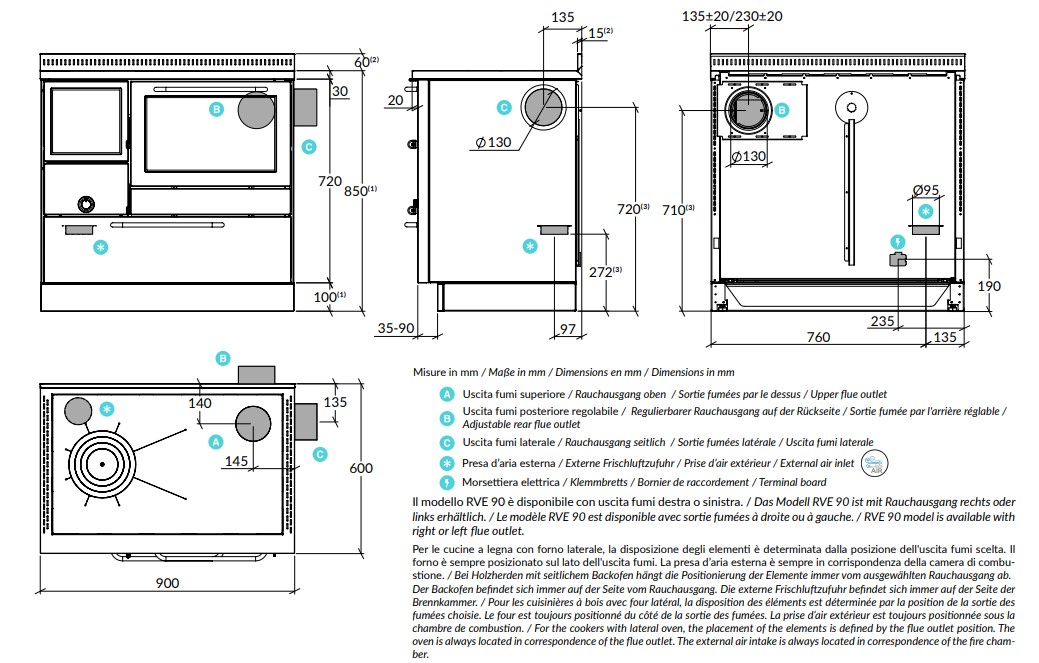 Holzherd Rizzoli - Serie RVE mit Backofen - RVE 90 - 8 kW - Variant