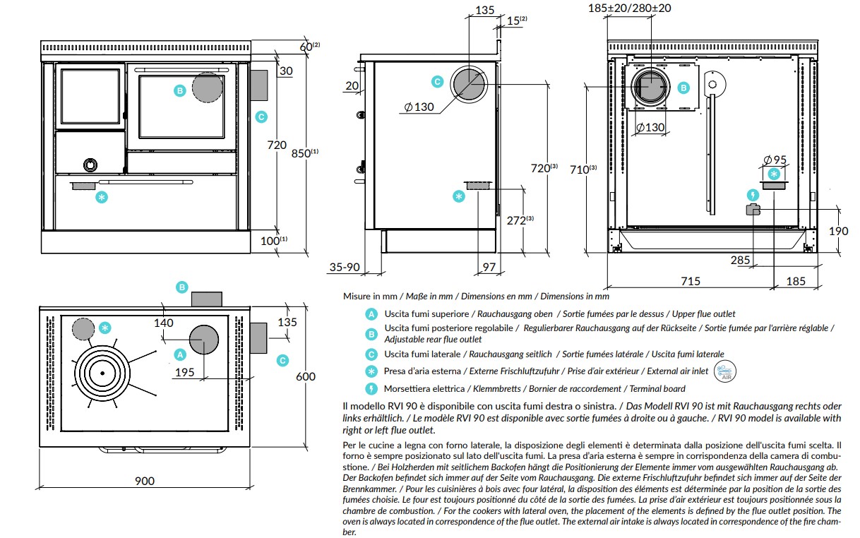 Der Holzherd RVI 90 mit Backofen ist auch in den Ausführungen Standard Edelstahl oder Variant erhältlich, wenn Sie eine andere Ausführung wünschen.