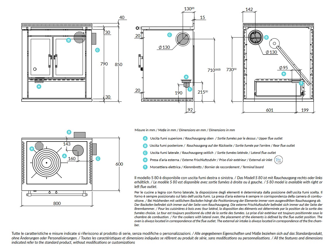 Holzherd Rizzoli - Serie S mit Backofen - S 80 - 10 kW - Classica konfigurierbar