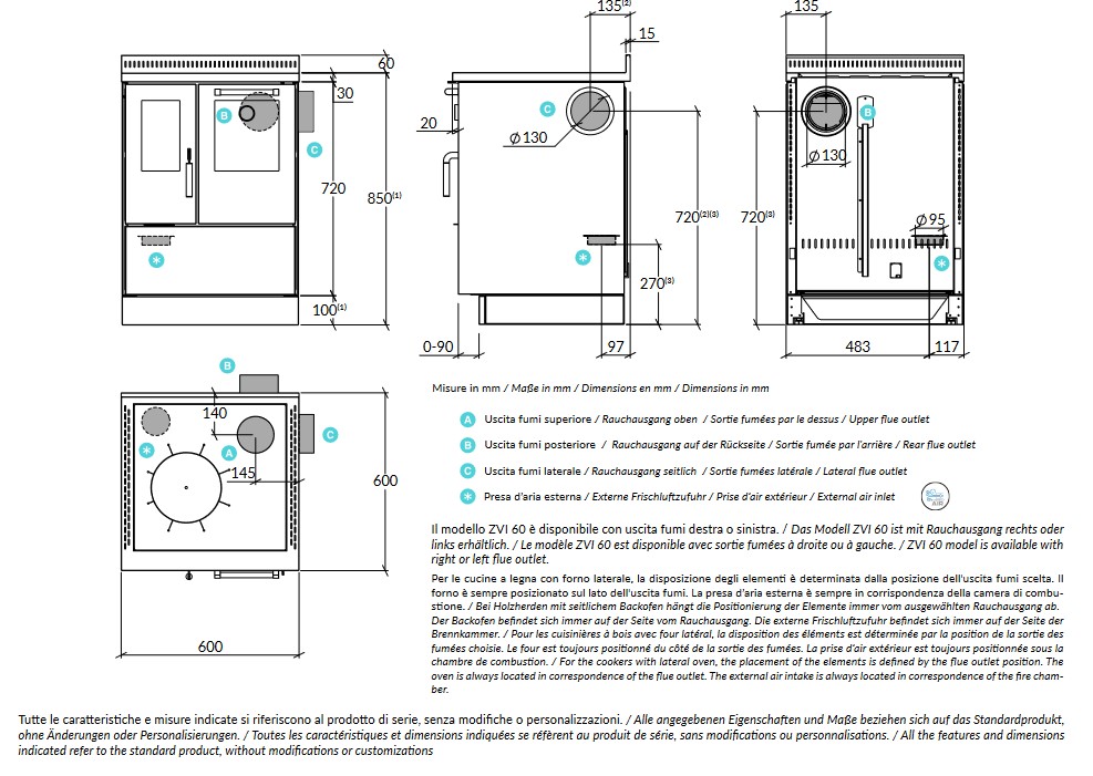 Die ZVI Serie von Rizzoli besticht durch sein schlichtes Design und vor allem in der einfachen Handhabung im täglichen Gebrauch. Der Küchenherd ist für den Einbau zwischen Möbel geeignet und verfügt über die Vorrichtung für die externe Frischluftzufuhr.