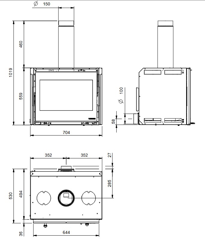 - Manuelles Rauch-Bypass-Ventil (für die Holzbeladungszündung)
