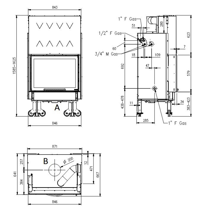 - Rauchrohrdurchmesser 200 mm oben