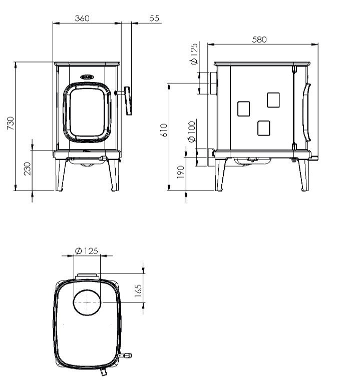 - Durchmesser Abgasanschluss 125mm