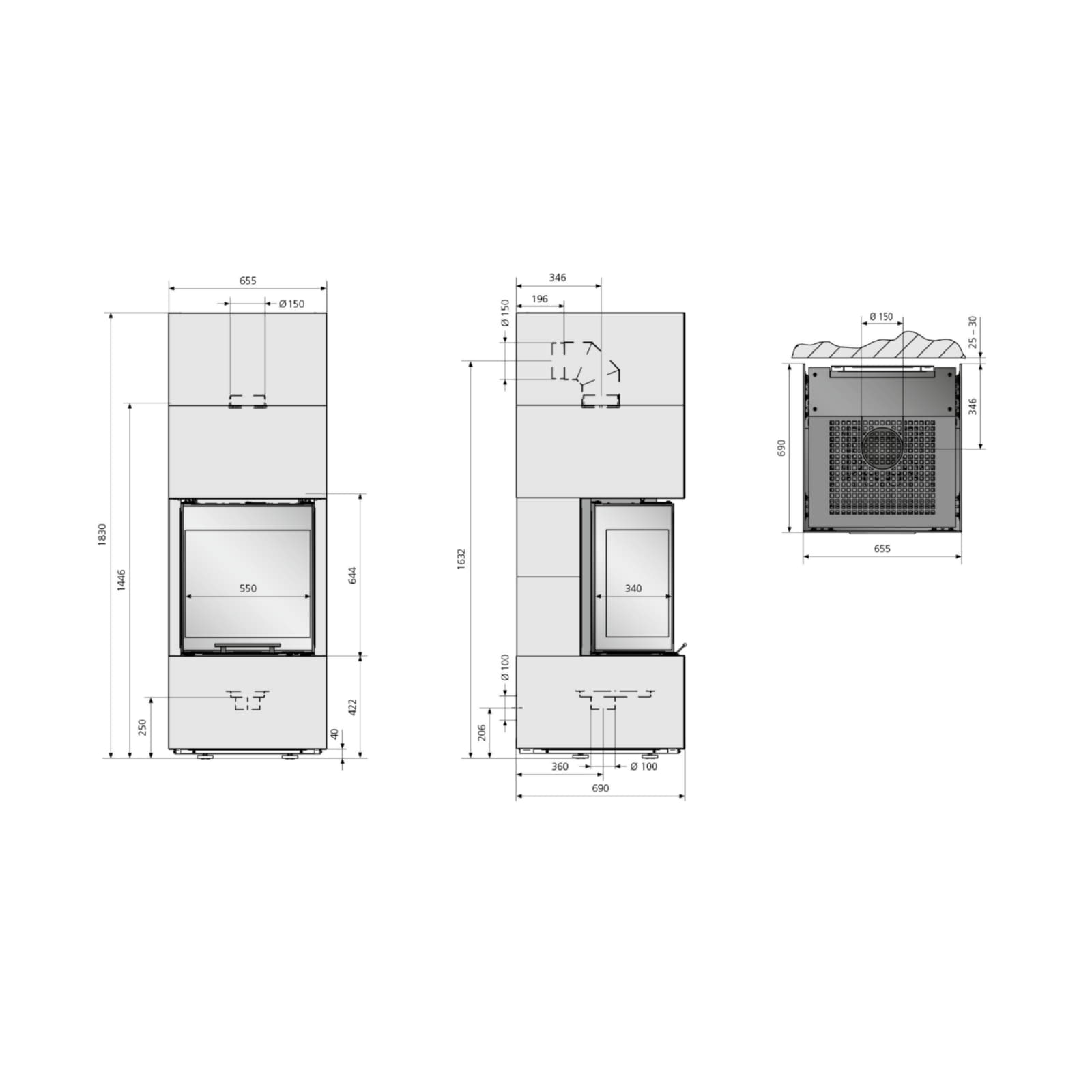 - Anschlusshöhe Rauchrohr hinten (Bohrloch mittig): 1632 mm
