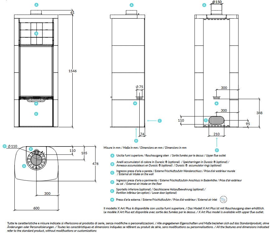 Kaminofen Rizzoli - Serie X Art - Plus - 7,7 kW - Keramikverkleidung