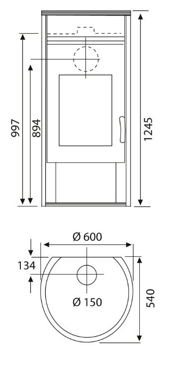- Abgasanschluss hinten/oben: Ø 150 mm