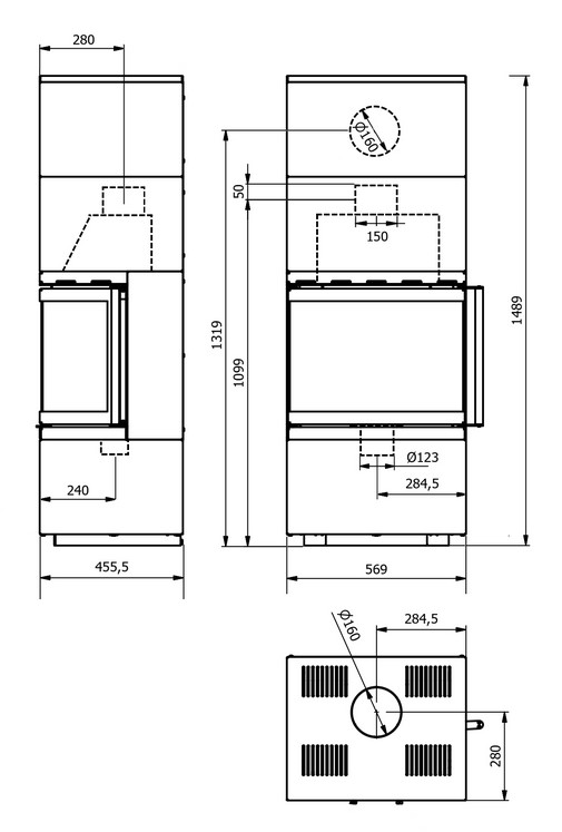 - Abgasanschluss oben/hinten: Ø 150 mm