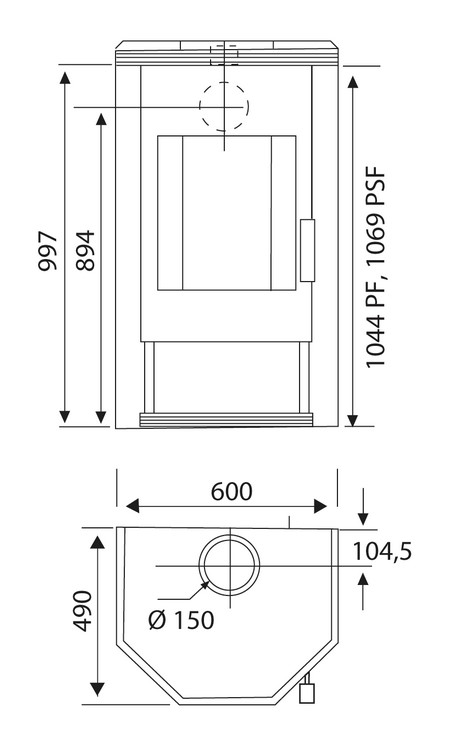 - Abgasanschluss hinten/oben: Ø 150 mm