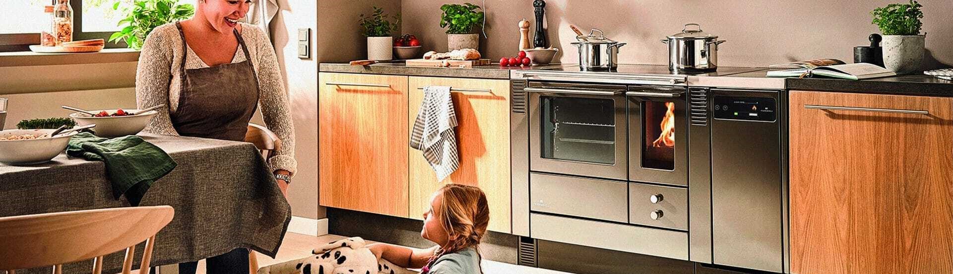 Ein dritter Gerätetyp von Kombigeräten sind wasserführende Kaminöfen für Pellets und Scheitholz mit Kochfeld. Diese können Sie zusätzlich als Küchenofen zum Kochen und Garen verwenden.
