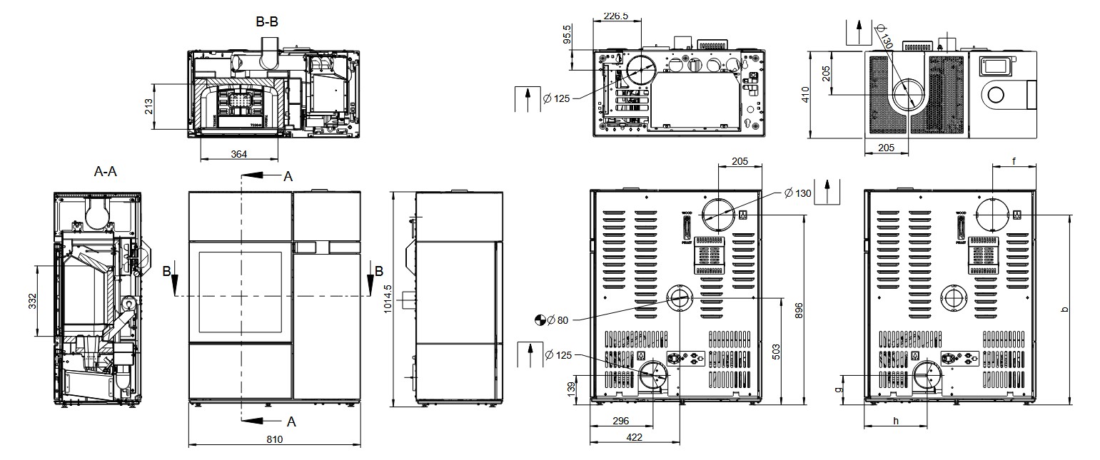 - Rauchrohranschlusshöhe hinten mittig 1017 mm