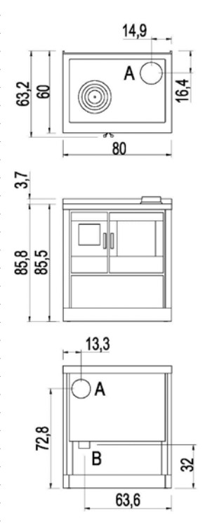 - Öffnung für die Verbrennungsluft Ø 80 mm