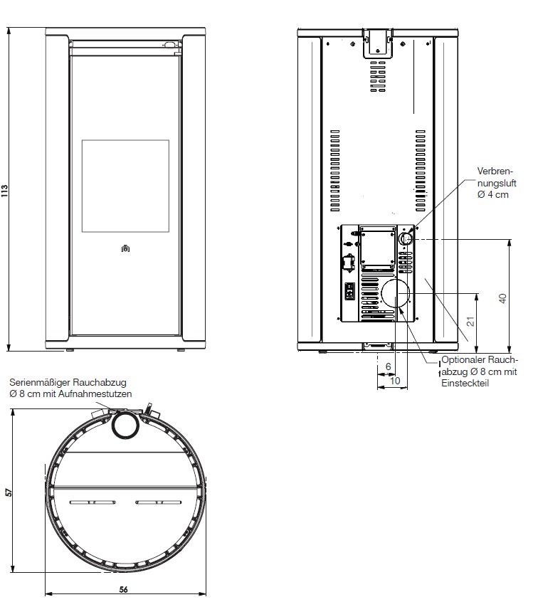 | Verbrennungszuluft (optional): | ohne Zuluftanschluss (raumluftabhängig) |