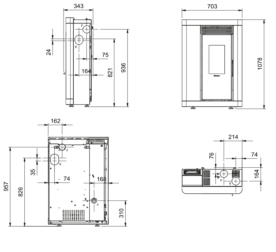 | Rauchrohranschluss: | seitlich oben hinten |
