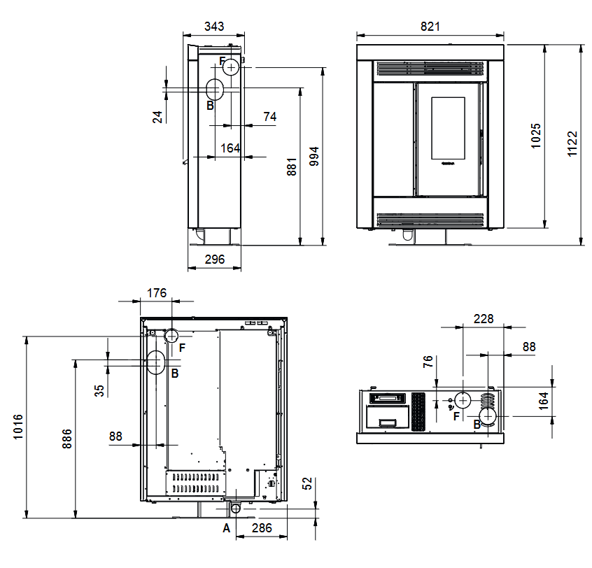 | Rauchrohranschluss: | seitlich oben hinten |