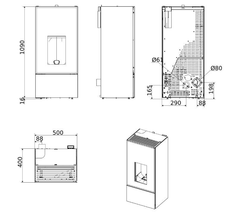 - Rauchgasaustritt Ø 80 mm