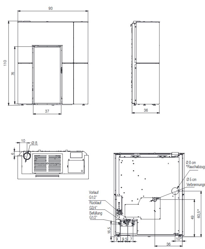 | Verbrennungszuluft (optional): | mit optionalem Zuluftanschluss (raumluftunabhängig) |