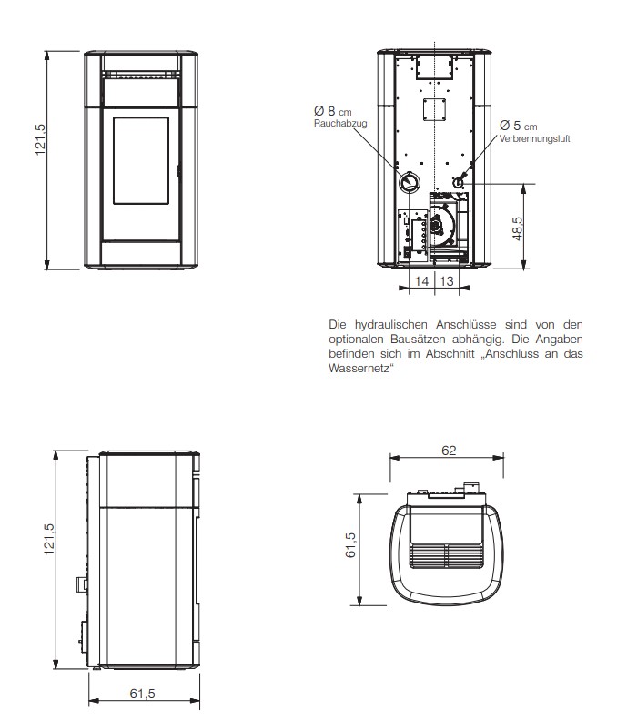 | Verbrennungszuluft (optional): | ohne Zuluftanschluss (raumluftabhängig) |