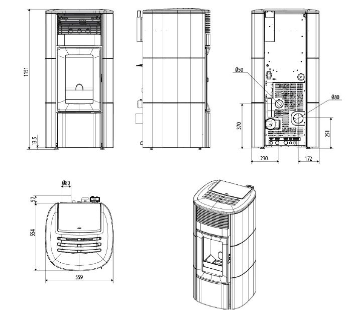 Eine weitere Besonderheit des Ofens: Die Struktur ist komplett dicht, was bedeutet, dass der Ofen auch in Häusern mit niedrigem Energieverbrauch eingesetzt werden können (Raumluftunabhängig). Das Gerät nutzt nicht den Sauerstoff aus dem Raum, sondern die zugeführte frische Luft. Serienmäßig ist der Ausschluss der Zwangslüftung (No Air Funktion) möglich. Der Ofen besitzt zudem eine Keramikzündkerze, welche eine reduzierte Einschaltzeit von 40 % gewährleistet.