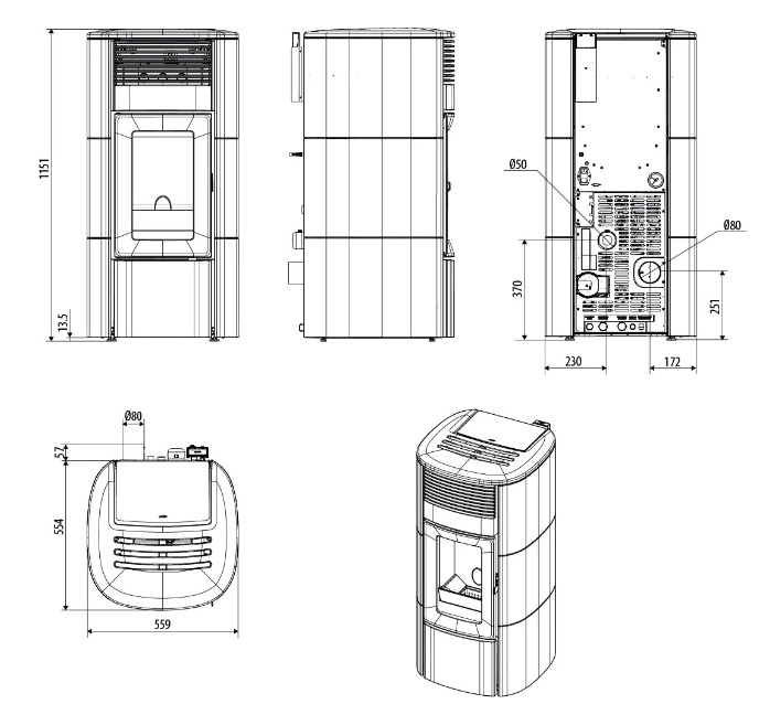 - Rauchgasaustritt Ø 80 mm
