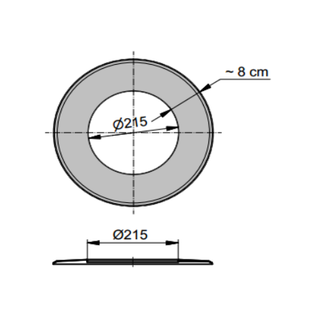 Die Rosette ist für isolierte Rauchrohre mit einem Durchmesser von 150 mm ausgelegt und verfügt über einen Rand von 80 mm sowie einen Innendurchmesser von 215 mm. Sie dient zur sauberen und optisch ansprechenden Abdeckung von Wand- oder Deckendurchführungen und verdeckt zuverlässig den Übergang zwischen Rauchrohr und Bauteil.