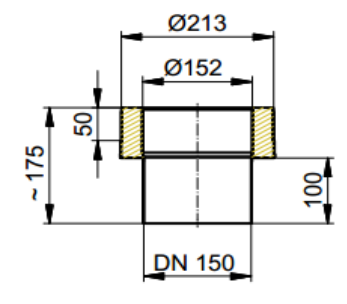 Das Rohrstück ist der Übergang vom einwandigen Rohr zum doppelwandigen Rohrsystem.