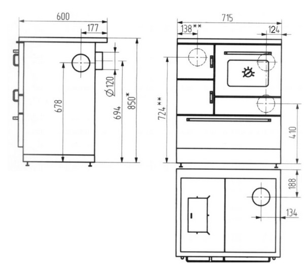 | Rauchrohranschluss: | seitlich oben hinten |