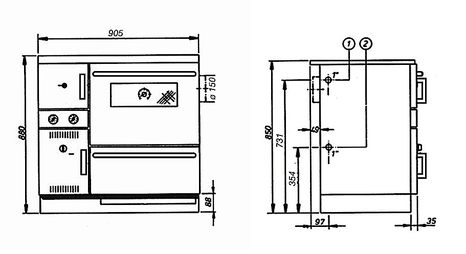 Elegant, hocheffektiv und komfortabel: Der K 148 überzeugt mit seiner ansprechenden Optik, dem massiven Edelstahlherdrahmen, den praktischen Kipphebelgriffen und der robusten Stahlplatte. Heiz- und Aschetür werden konvektiv durch Luft gekühlt, die Primär- und Sekundärluftzuführung ist regelbar. Der K 148 verfügt über einen groß dimensionierten Feuerraum, in den problemlos Holzscheite bis zu 42 cm von vorne oder oben eingebracht werden können. In der Winterroststellung brennt der Herd bei Kleinstellung bis zu 12 Stunden. Für den Kochbetrieb kann der Rost dank Kurbel auch während des Betriebes stufenlos nach oben verstellt werden, sie sparen so Brennholz und verringern die Wärmeabgabe an das Heizwasser. Mittels Temperaturregler wird die Verbrennungsluft exakt eingestellt und die Heizungsvorlauf- und Bratrohrtemperatur geregelt. Über die Thermometer im Sichtfenster des Bratrohrs bzw. an der Vorderfront können Sie die Werte bequem kontrollieren. Die thermische Ablaufsicherung, der Wärmetauscher, Thermo- und Manometer und eine Zentraleinrichtung mit Anheiz- und Abgasumlenkklappe. sind serienmäßig enthalten. Als Sonderzubehör ist eine passende 11 cm breite Installationseinheit mit Pumpe, Ausdehnungsgefäß, thermischer Kesselüberwachung, Sicherheitsventil, Entlüfter, sowie Pumpenschalter erhältlich.