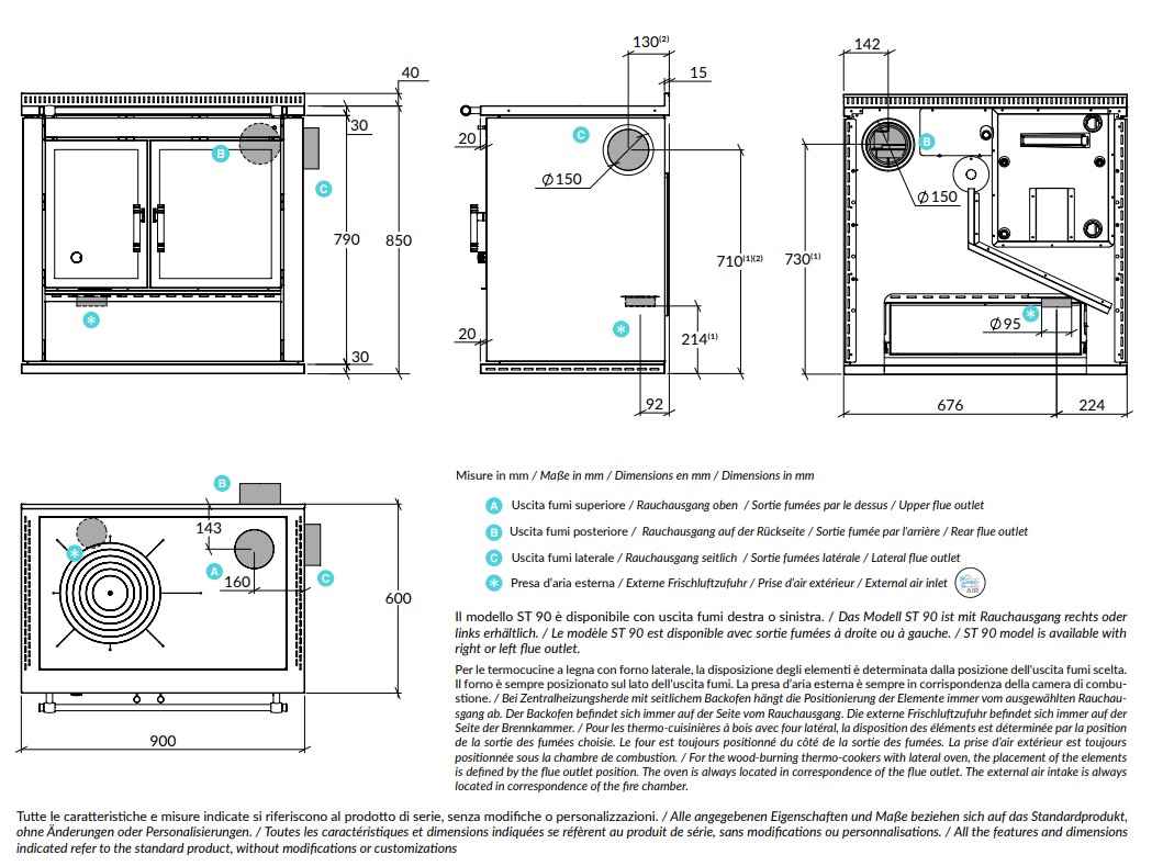 Zentralheizungsherd Rizzoli - Serie ST mit Backofen - ST 90 B - Moderna - 11 kW