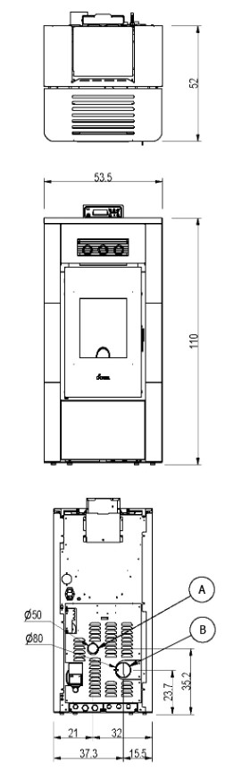 - Öffnung für die Verbrennungsluft Ø 50 mm